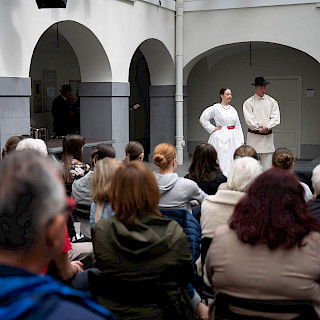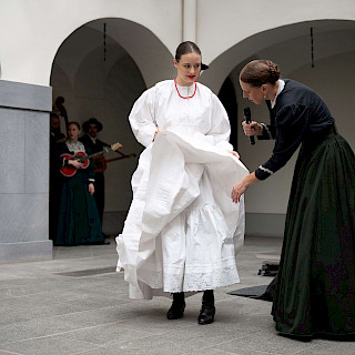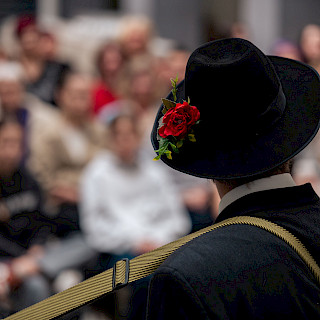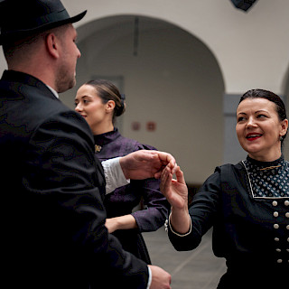 The event continued with a dance workshop, where visitors joined the folklore dancers and learned the basic steps of traditional Bela krajina dances. The event was moderated by Tadej Fink.