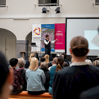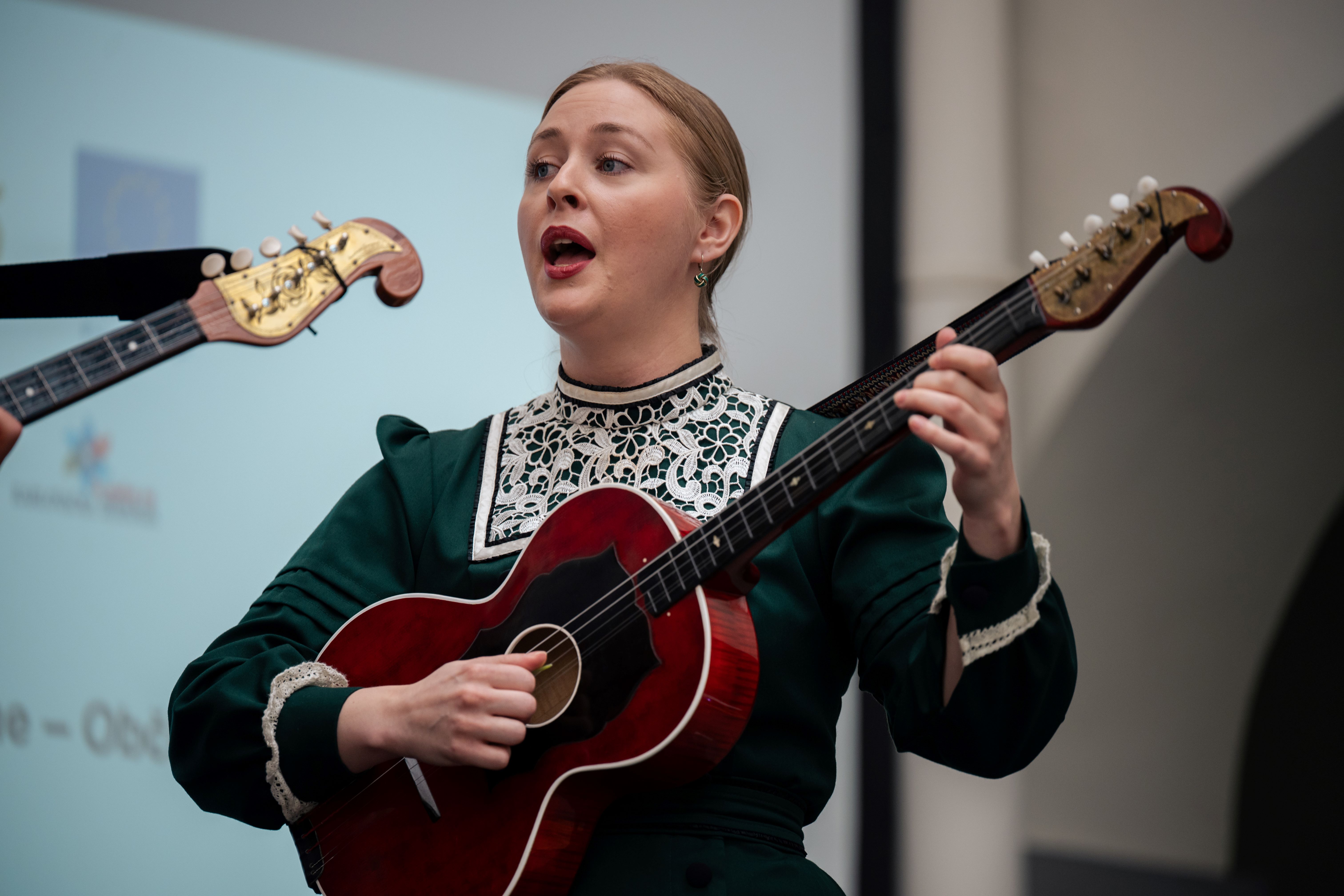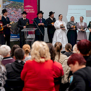 This was followed by a presentation of Bela krajina by Tadej Fink, with a special focus on the Municipality of Črnomelj and the region’s rich intangible cultural heritage. In an engaging animated performance, members of the Dragatuš Folklore Group captivated the audience with traditional dances and songs from Bela krajina. Kristina Zajc, a group member, then presented the traditional Bela krajina costume and its evolution through time.