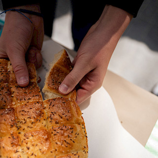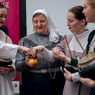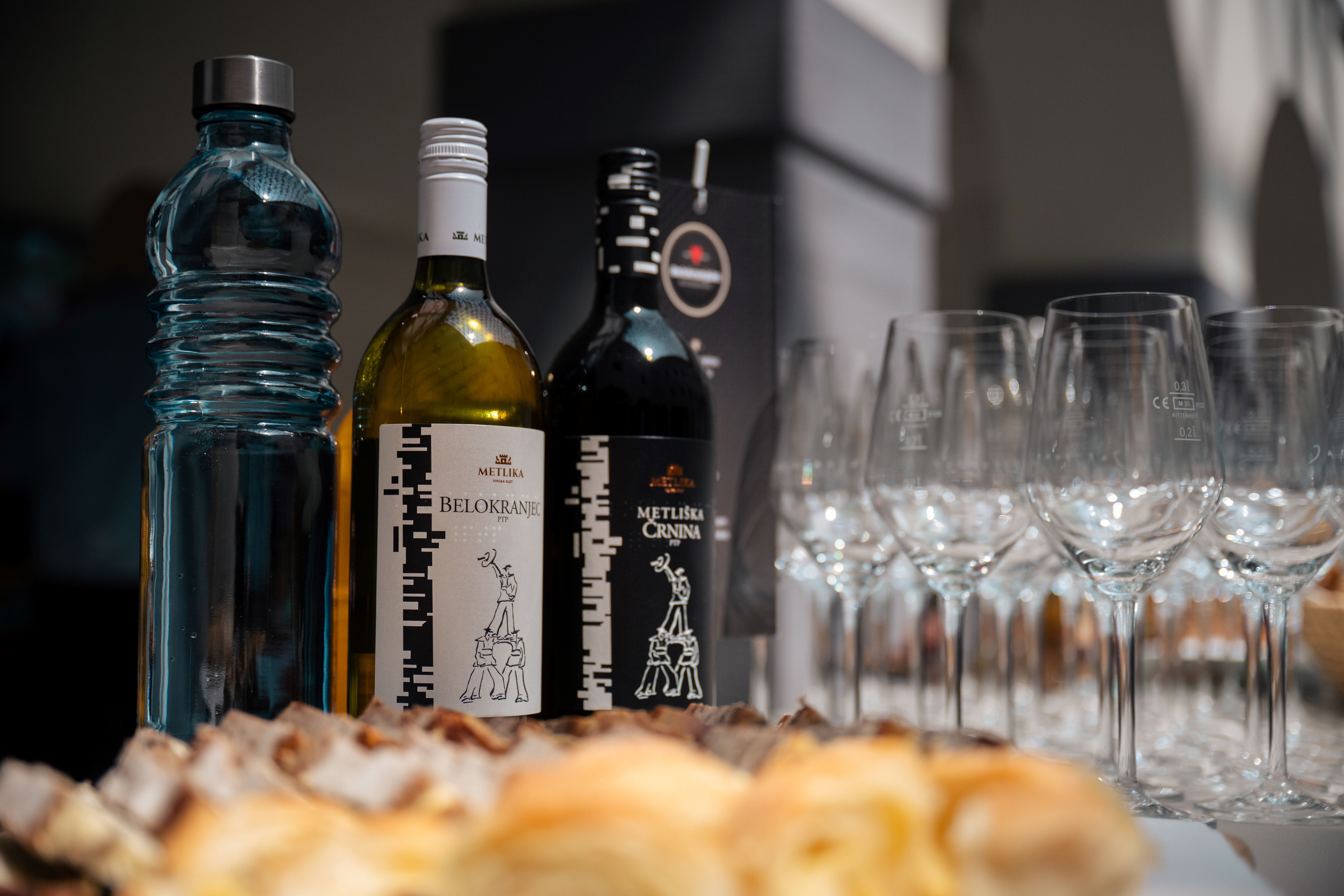 Following the cultural program, a tasting of typical Bela krajina dishes was held. Baked goods such as belokranjska pogača, povitica, buckwheat potica, and Črnomelj pretzels were prepared by Bernarda Kump. Meat products were provided by Bojan Čadonič, and wine was served from the Metlika Wine Cellar.