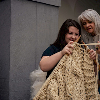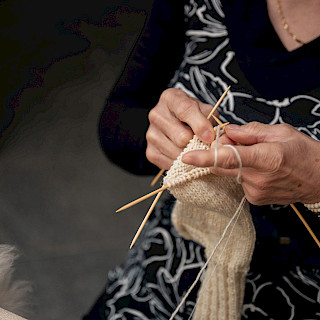 The promotion of the cultural heritage of Črnomelj and Bela krajina also included a local crafts exhibition, prepared by artisan Tončka Jankovič from Bela krajina. She showcased bobbin lace, crocheted products, and woven wool items. With her guidance, visitors could try knitting with oversized (XXXL) knitting needles.